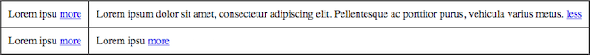 Po zastosowaniu more.js lub po kliknięciu ‘less’ (collapse):