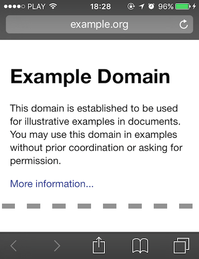 iPhone: uruchamiasz Safari i wchodzisz na stronę example.org