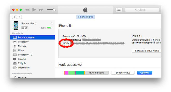 Potrzebujemy do tego UUID urządzenia (dowolnego z rodziny Apple: iPhone, iPad, iPod).