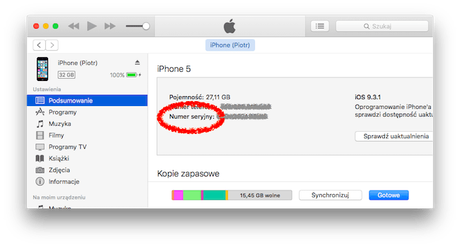Klikamy w "Numer seryjny" aby pokazał nam się UUID urządzenia:
