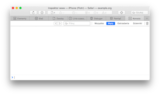 Od teraz jesteśmy podłączeni konsolą do strony otworzonej na iPhonie. Możemy w pełni debugować naszą aplikację.