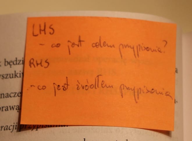 Drugi termin, czyli RHS oznacza, że silnik chce użyć zmienną. I tak o to prosty przykład: