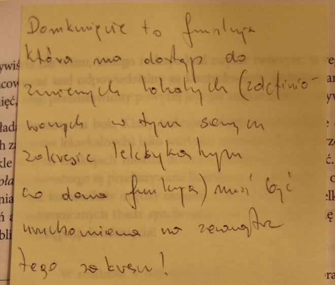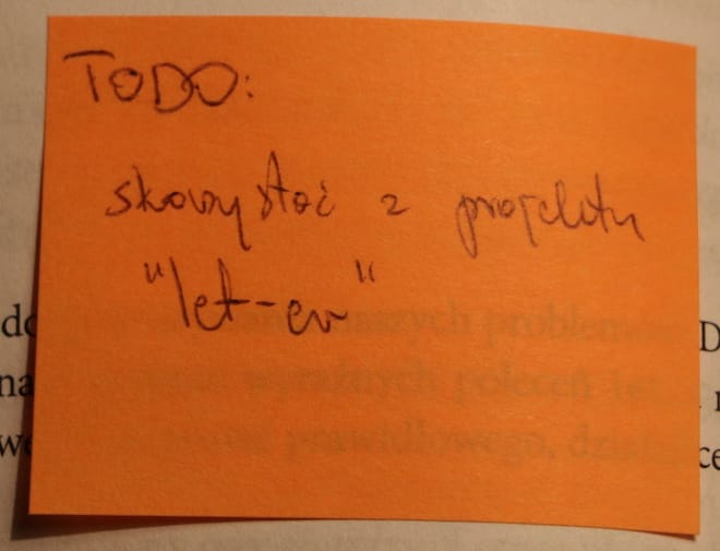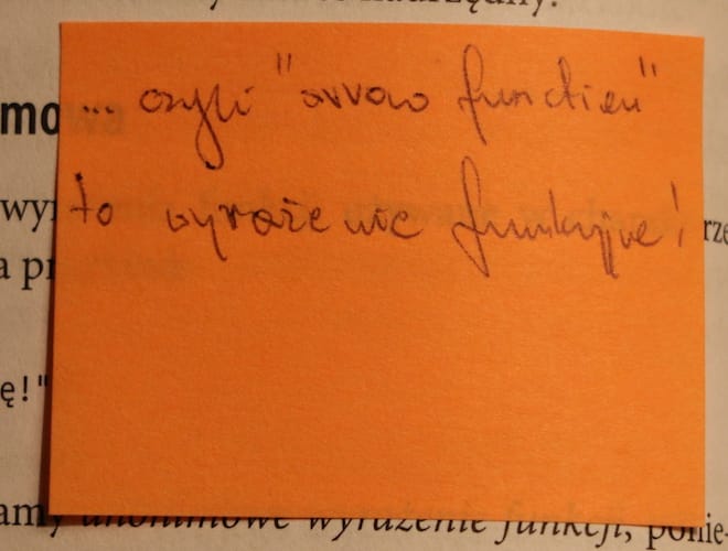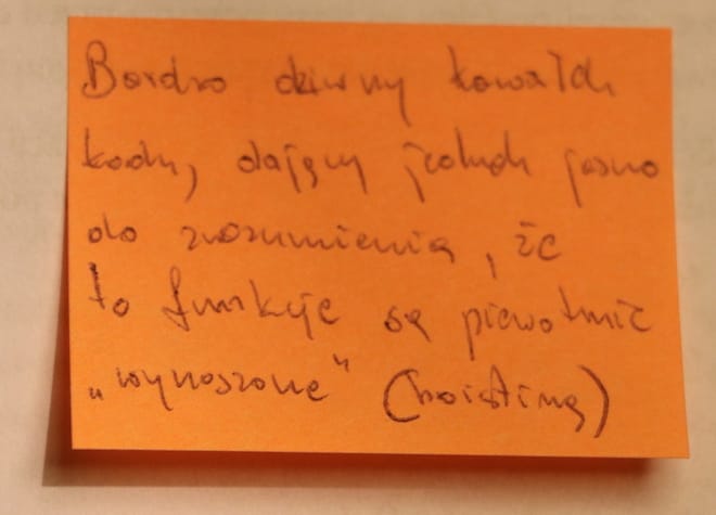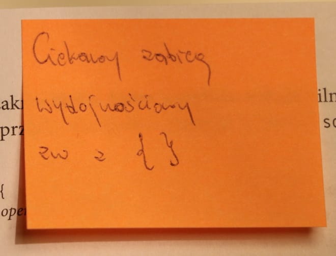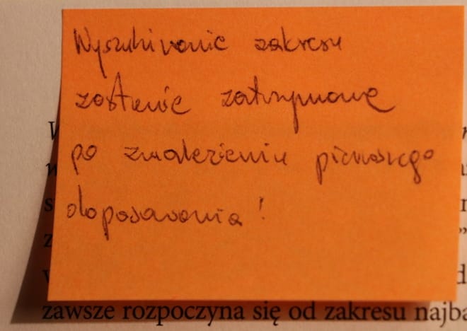 Tym razem nie było inaczej. W sumie użyłem 11-tu karteczek, gdzie napisałem sobie notatki w związku z daną zawartością strony, na której karteczka znalazła swoje miejsce.