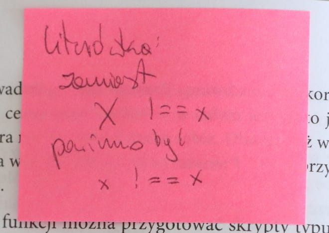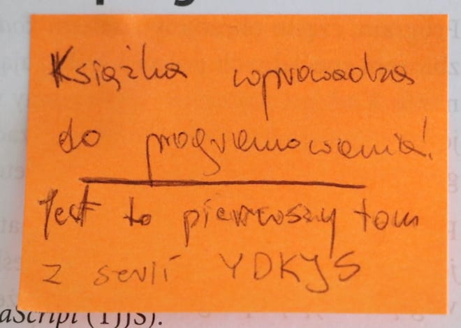 Chciałbym przedstawić teraz moje notatki, które pojawiły się podczas czytania TJJS. Na drodze do biegłości. Tym razem przykleiłem w książce 17 karteczek znajdując przy tym tylko 2 błędy. Błędy te bardziej były wynikiem złego tłumaczenia, niż w braku wiedzy na temat JavaScript.