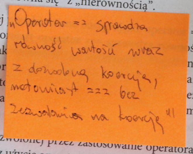 - “koercja” to niejako wymuszanie rzutowania, rzutowanie niejawne, dziejące się automatycznie