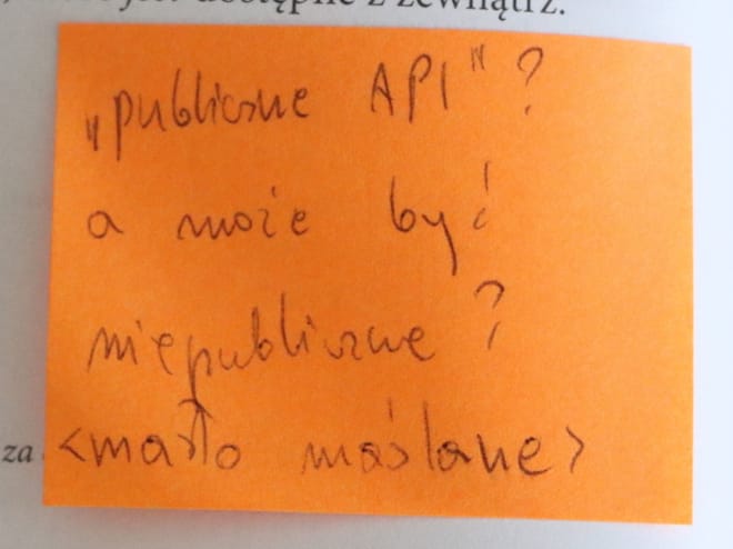 Pisząc tą karteczkę byłem w błędzie i myślałem, że API jednoznacznie daje nam do zrozumienia, że jest tylko PUBLICZNE. Po przeczytaniu Wikipedii wiem, że tak nie jest. Nie ma tutaj “masła maślanego”.