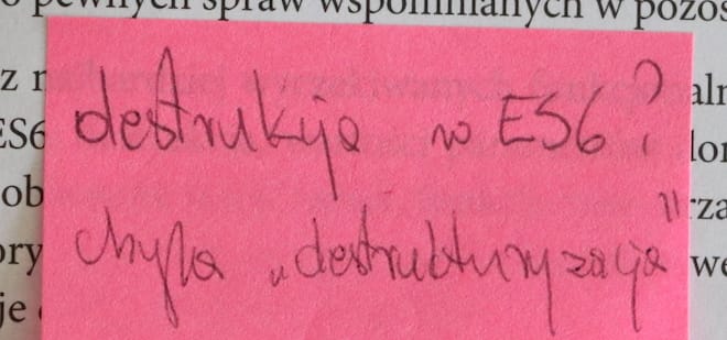 Tutaj wina leży po stronie tłumaczenia. Autorowi chodziło o destructuring, czyli rozbijcie struktury. Zaprezentuje przykład o co chodzi z “destrukturyzacją”.