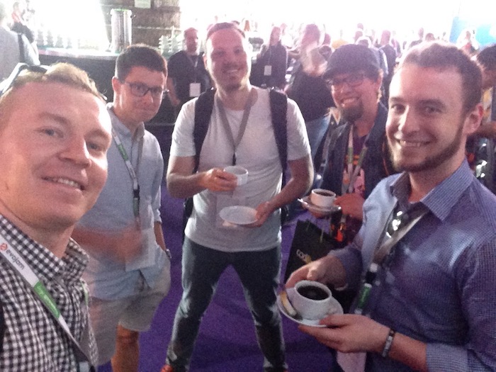 Jednym z wielu plusów uczestnictwa w konferencjach jest możliwość poznania wielu osób. Tym razem razem z Piotrkiem zapoznaliśmy się z Lucą Mezzalira - organizatorem społeczności LondonJS. Organizacja ta posiada ponad 5k członków na Meetupie. Jest to ponad 2x więcej niż społeczność WarsawJS. Mamy do czego dążyć!