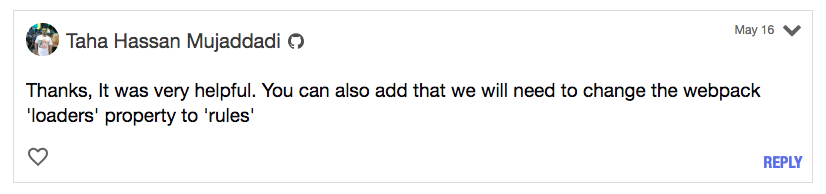 - configuration.module has an unknown property 'loaders'. These properties are valid: