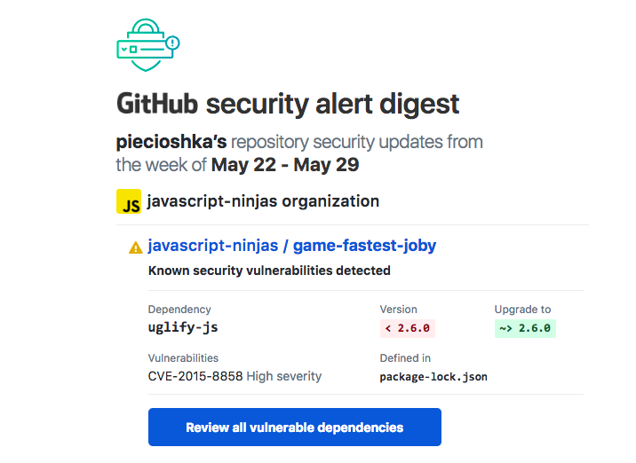 Co to oznacza? Otóż to, że projekt, którego kiedyś rozwijałem, posiada podatność z powodu korzystania z biblioteki w której taką podatność wykryto.