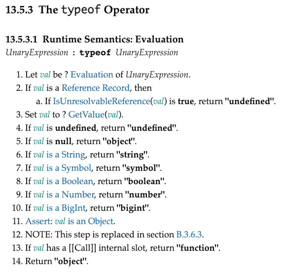 typeof w specyfikacji ECMA-262 edycja 14 (2023)